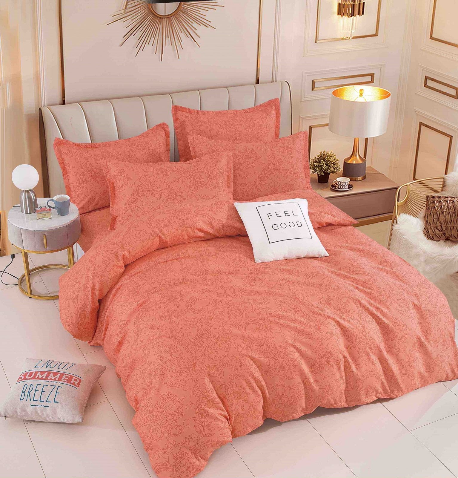 Lenjerie Pat Dublu din Finet 6 Piese, cu Elastic, Corai Royal-C6394