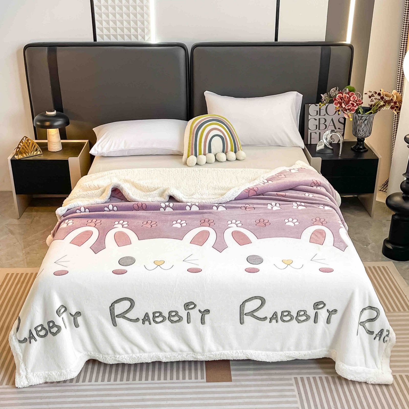 Patura Cocolino cu Blanita, 200x230cm, Roz/Iepurasi-C7491